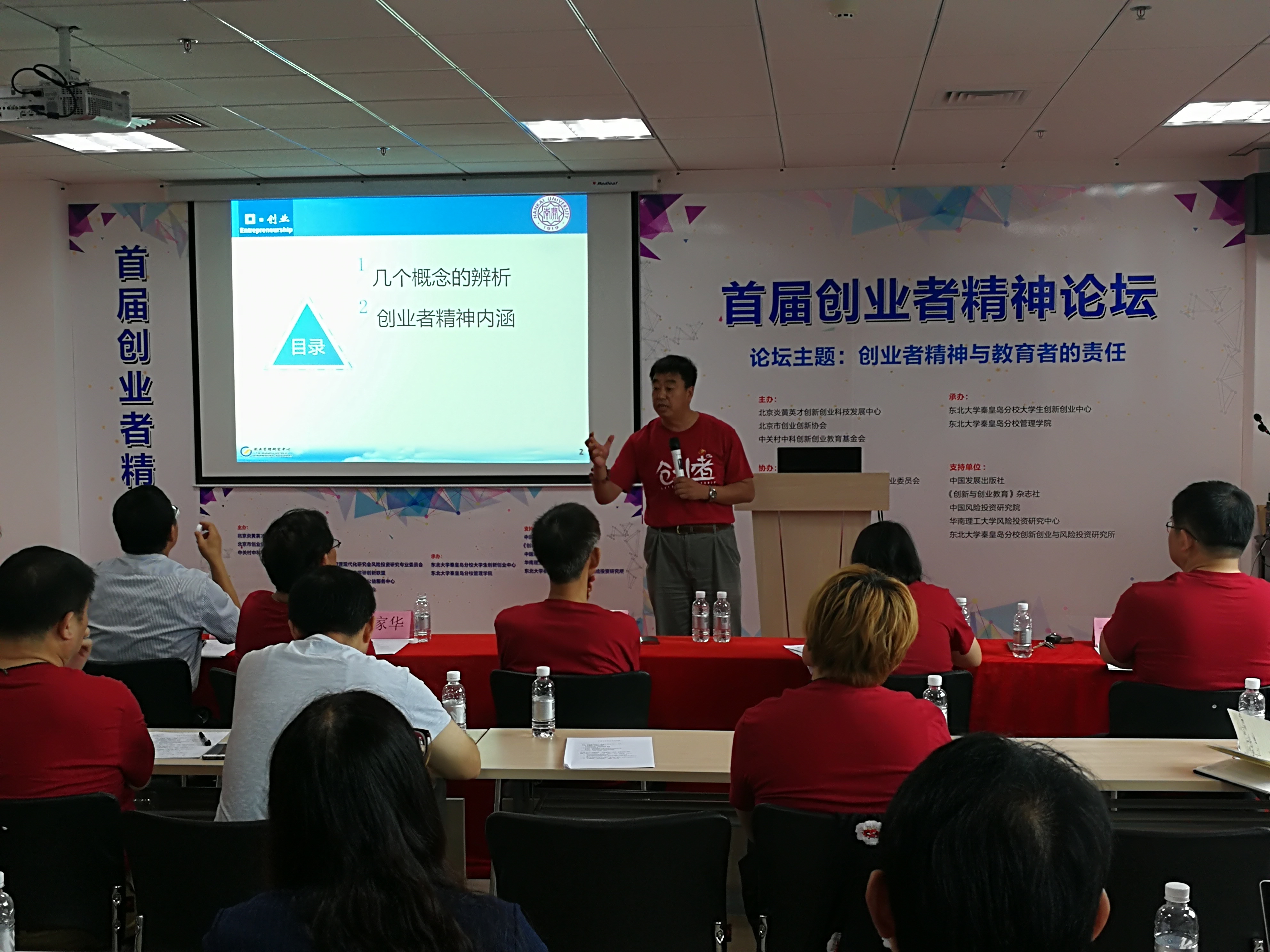 2017年9月9日,首届创业者精神论坛在东北大学秦皇岛分校隆重召开。本次论坛由北京炎黄英才创新创业科技发展中心、北京市创业创新协会和中关村中科创新创业教育基金会三家公益组织主办,由伟德国际官网入口风险投资研究专业委员会、中国实践教育产学研创新联盟、山西省科技创新创业服务大平台、南京建邺巾帼创客家公益服务中心、贵安互联网企业发展协会、中关村众筹联盟以及秦皇岛众筹爱心企业联盟社会团体等协办,由中国发展出版社、中国风险投资研究院、以及《创新与创业教育》杂志社等机构支持。论坛由东北大学秦皇岛分校大学生创新创业中心与管理学院联合承办。来自全国各地30余位创新创业领域的专家学者汇聚一堂,探讨创业者精神与教育者的责任。