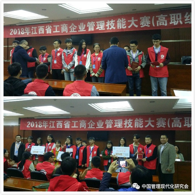 闭幕式上,主持人介绍了出席嘉宾并作比赛总结;裁判组代表舒文存宣读比赛成绩,比赛最终决出一等奖3队,二等奖11队,三等奖21队。其中,江西应用工程职业学院1队获得高职组一等奖,江西理工大学应用科学学院1队和江西财经大学2队分别获得本科组一等奖。出席闭幕式的嘉宾为获奖团队颁发荣誉证书和团体奖学金。