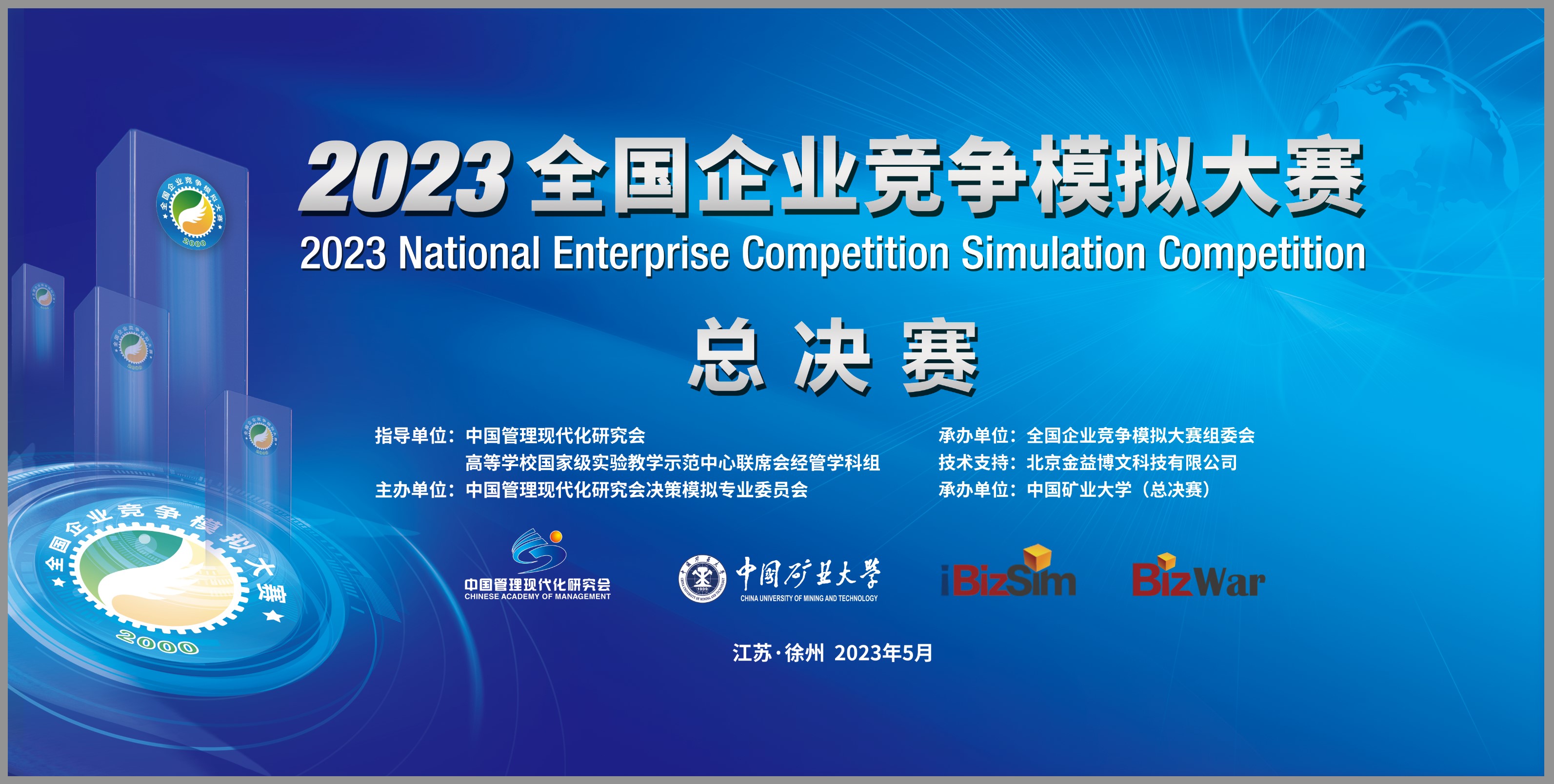 5月19日至5月20日,2023年全国企业竞争模拟大赛总决赛在中国矿业大学南湖校区成功举办。本届大赛由伟德国际官网入口、高等学校国家级实验教学示范中心联席会经管学科组共同指导,伟德国际官网入口决策模拟专业委员会主办,中国矿业大学承办总决赛,北京金益博文科技有限公司提供竞赛平台和技术支持。