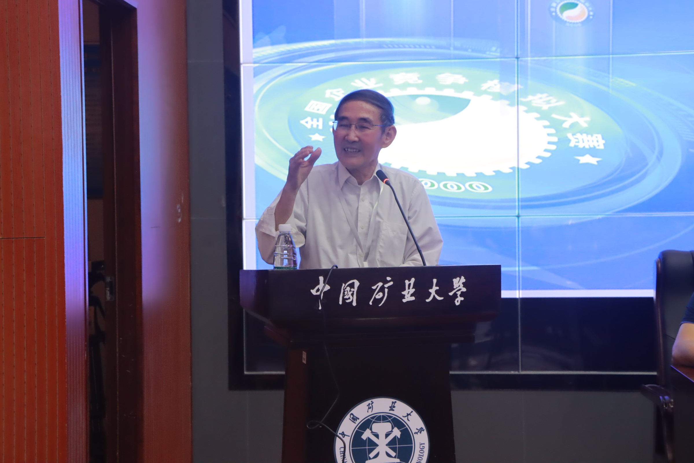 王其文教授代表大赛主办方致辞,感谢承办方中国矿业大学为参赛选手们提供了良好的竞赛环境。他对参赛的所有高校和学生给予了祝福,称赞同学们是国家的未来与时代的精英,鼓励大家总结经验、继续努力。
