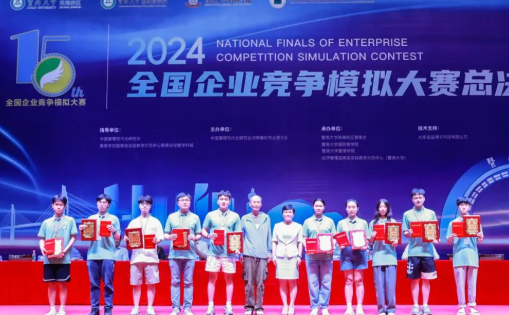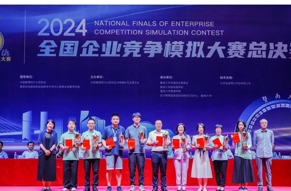 闭幕式由暨南大学管理学院副院长、经管国家级实验教学示范中心主任欧锦文主持。经过8期的激烈角逐,企业决策赛道和企业运营赛道106支队伍荣获一等奖、29支队伍荣获二等奖。竞赛还评选了40个优秀组织奖,并为8个赛区第一名的队伍颁发团体奖学金,为获得一等奖团队的指导教师颁发"优秀指导老师奖"。